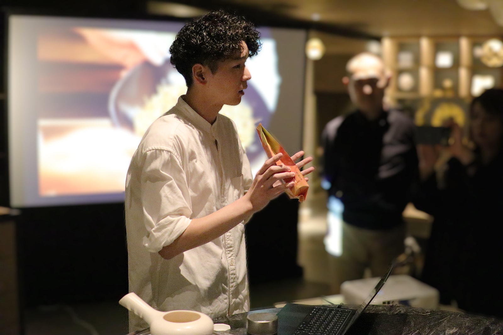 はじめに、会場となった星野リゾートが運営するホテル「OMO5金沢片町」の堀さんより、ホテルのカフェスペースにて開催中の『金沢KOGEIナイトサロン』についてご紹介いただきました。