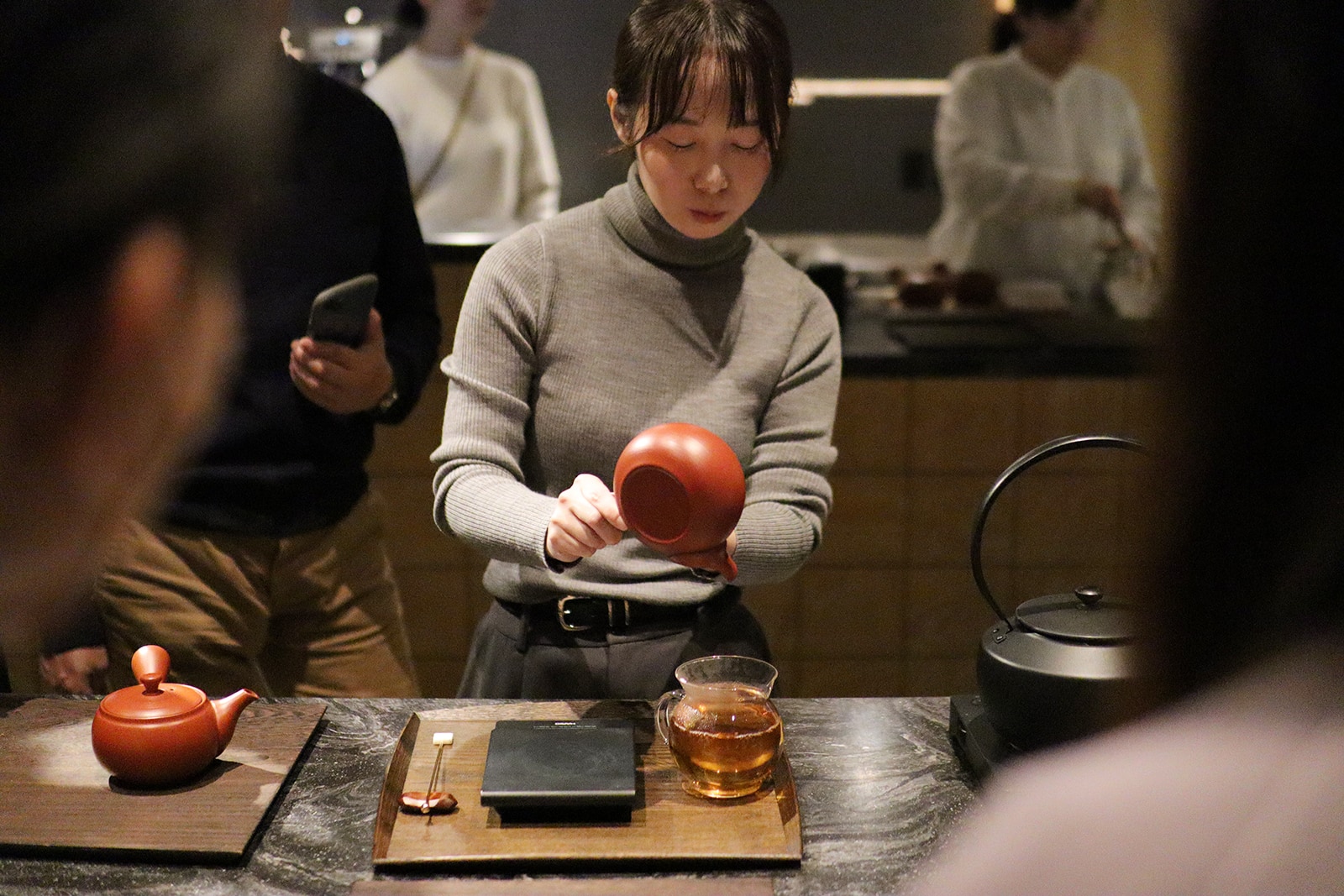 その後、金沢KOGEIナイトサロンでも実施している、淹れたてのお茶を飲みくらべ。