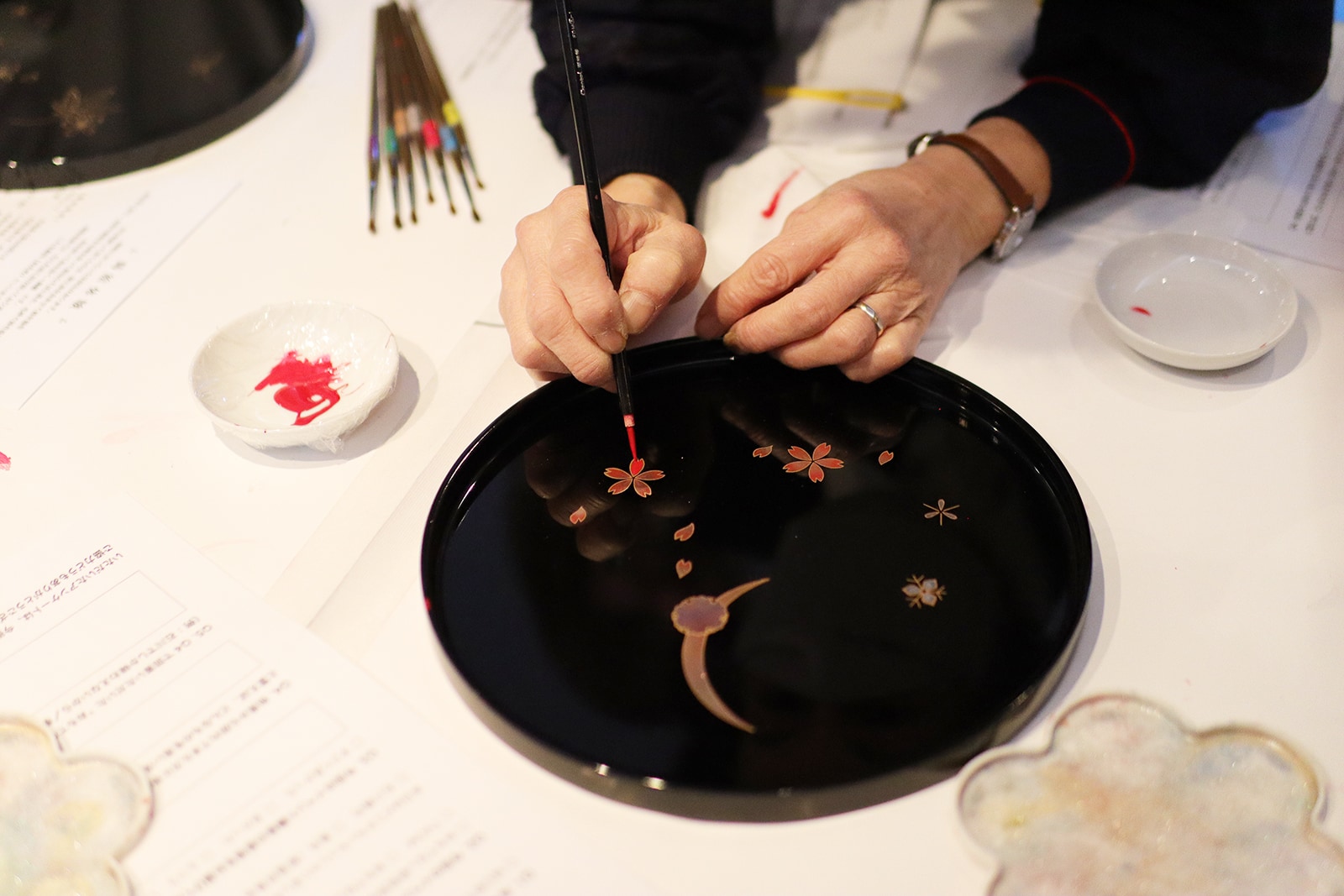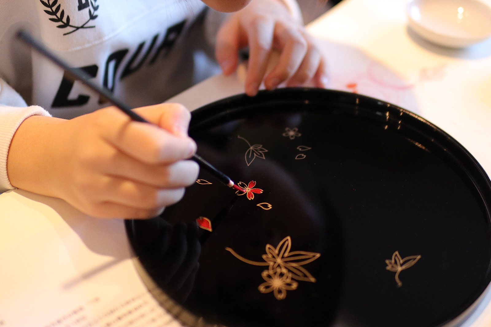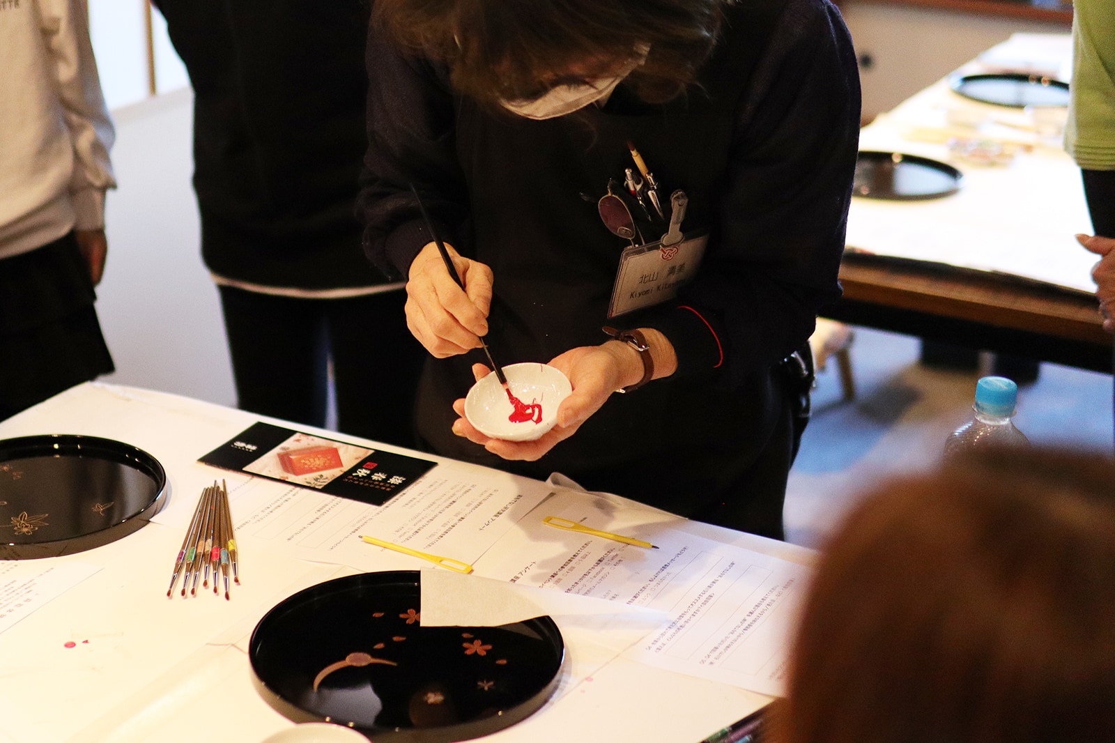 参加者からは「むずかしいけど面白い」「だんだんコツがつかめて楽しい」といった声が聞かれ、蒔絵を通して日本の伝統文化に触れる時間となりました。